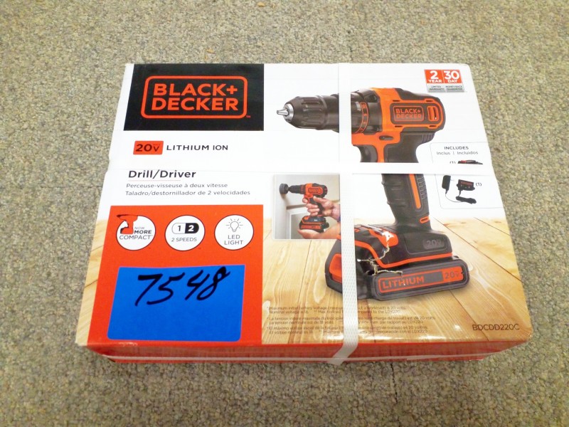 Description: 1 each new in box Black & Decker 20v drill with the battery and charger.