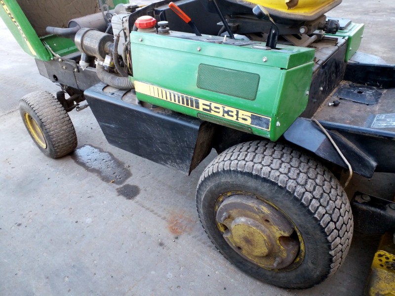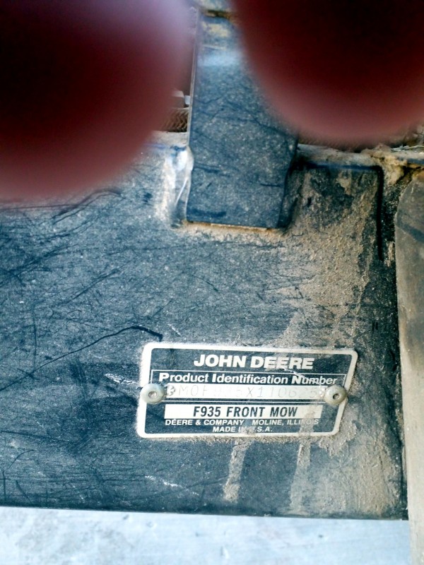 Description: 1 each John Deere model F935 front deck lawn mower. This was a running unit when it was delivered to surplus as in it was driven off the trailer and parked. No further testing was performed. Upon pick up the key will be with the front office staff.