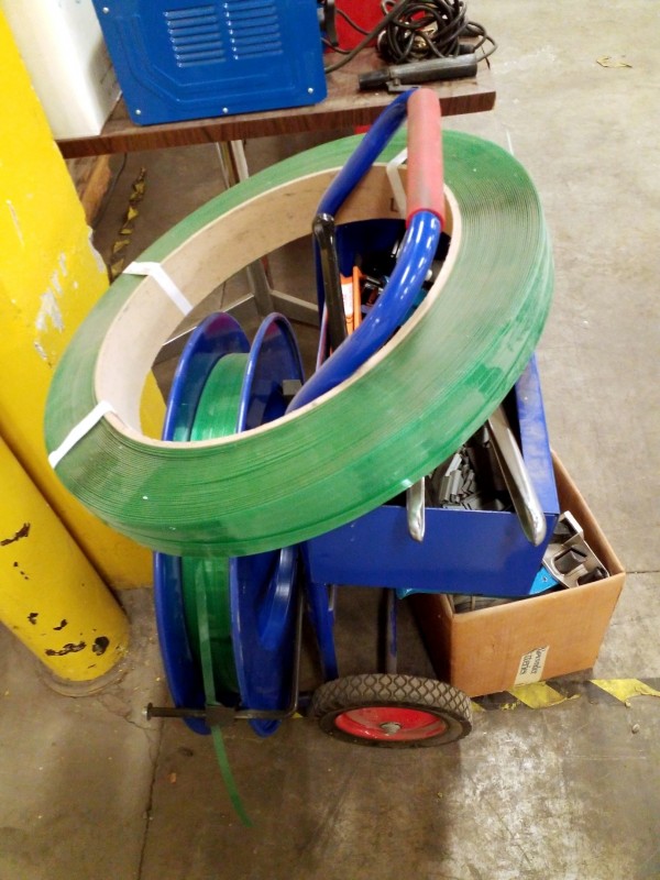 Description: 1 each plastic strapping cart with accessories.