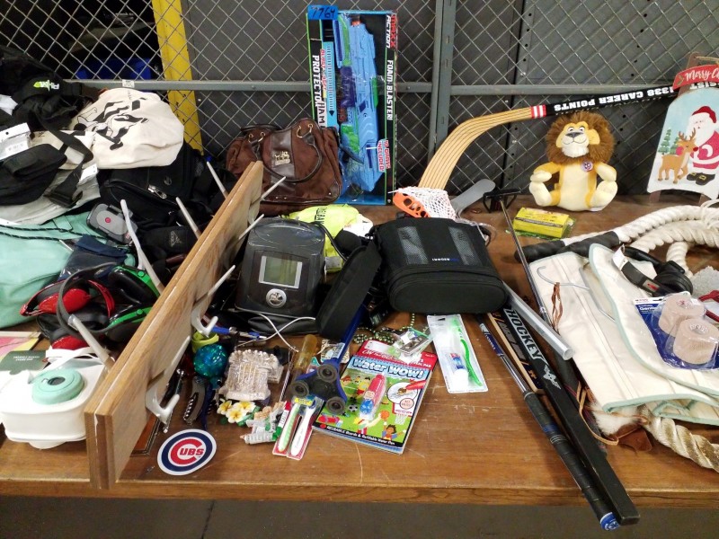 Description: 1 each table lot consisting of miscellaneous items. The table isn't included in this lot.