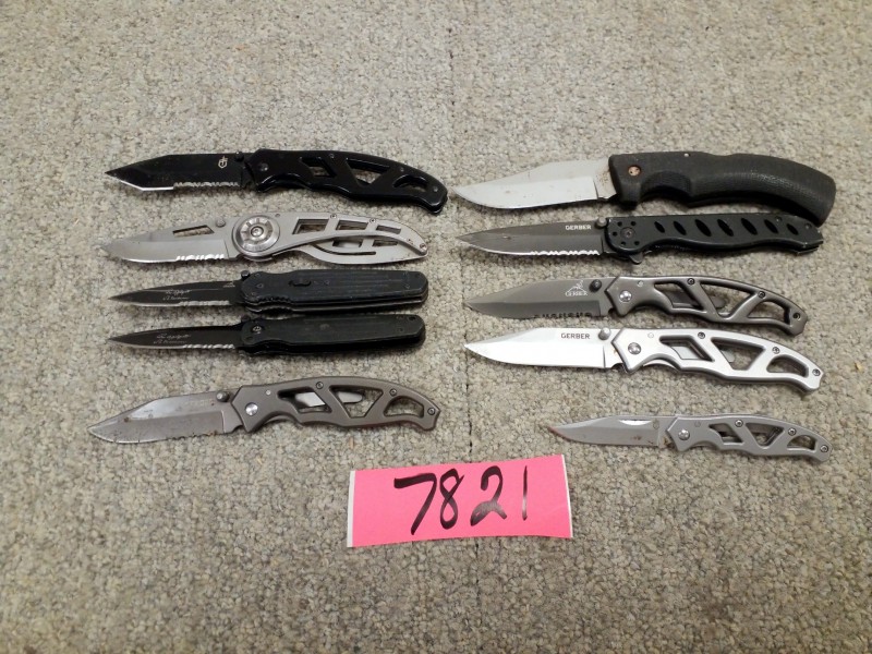 Description: Lot consisting of 10 each miscellaneous Gerber pocket knives.