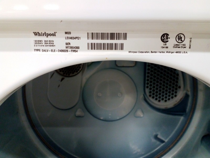 Description: Lot consisting of 1 each Whirlpool washer and 1 each Whirlpool electric dryer. Model numbers will be in the pictures.