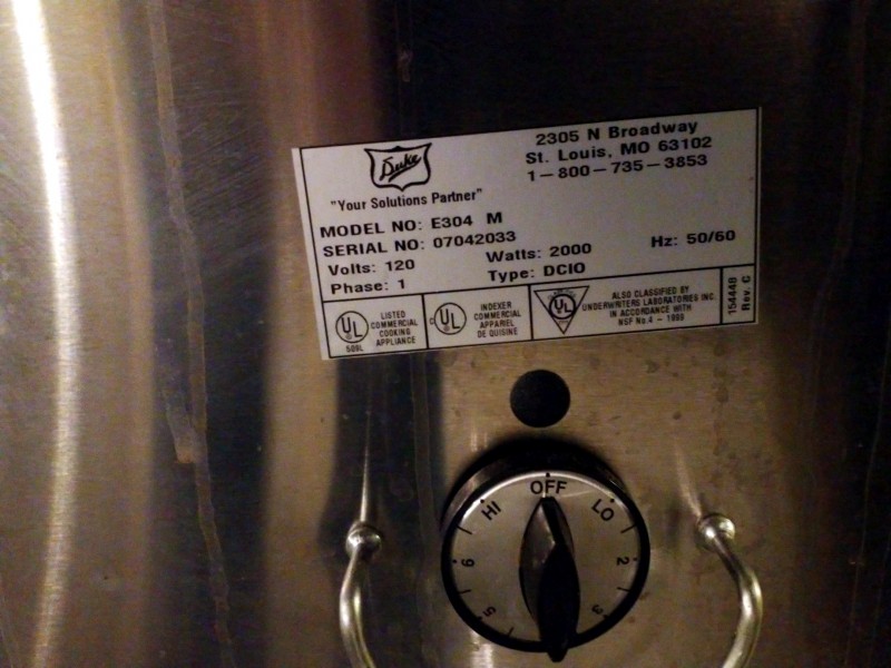 Description: 1 each Duke E304 M steam table hot food unit.