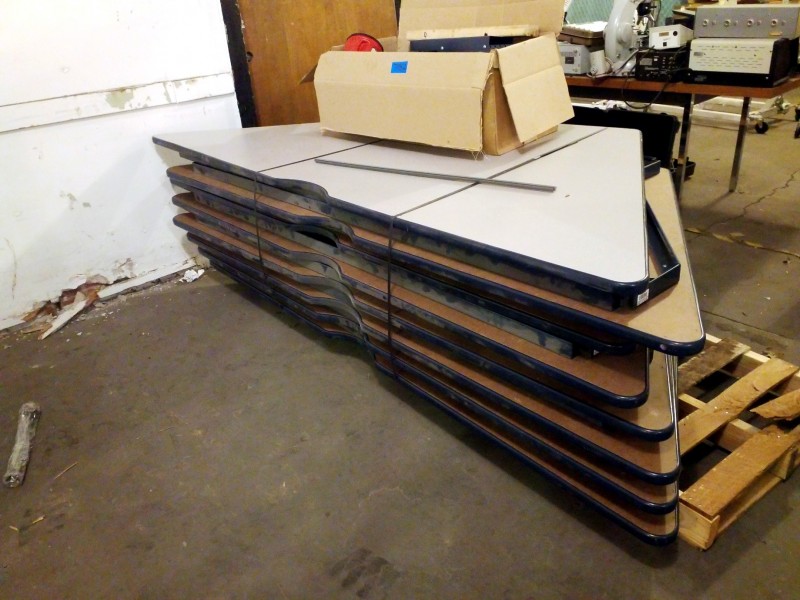 Description: Lot consisting of 8 each 1/2 hexagon tables.