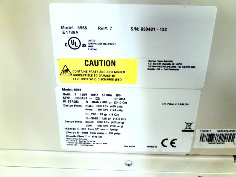 Description: 1 each Fisher Scientific Isotempmodel 8956 low temp freezer.
