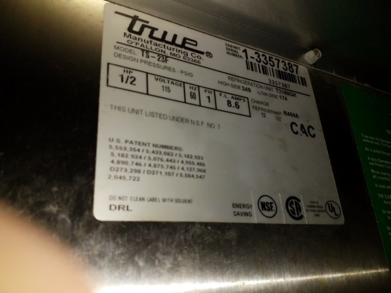 Description: 1 each True Freezer model TS 23F.