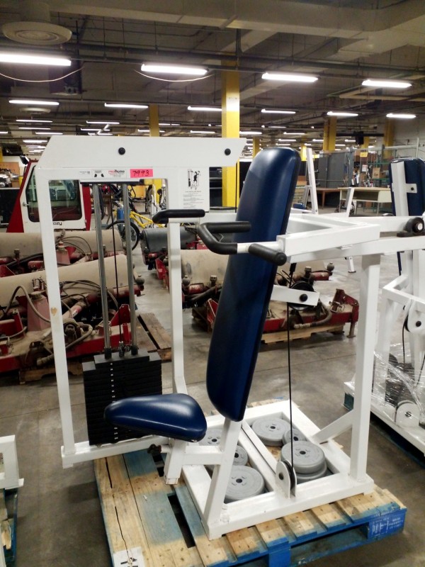 Description: 1 each Pro Maxima shoulder press workout machine and miscellaneous weights.