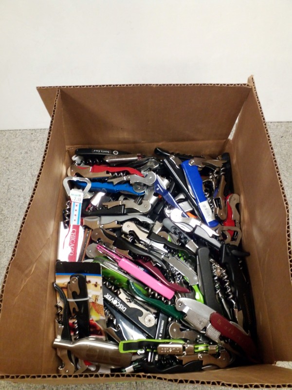 Description: 1 each box consisting of miscellaneous corkscrew/bottle openers.