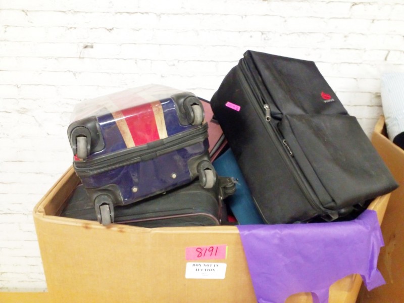 Description: 1 each big box of miscellaneous luggage and bags. The box isn't included in this auction. The contents will need to be removed by the winning bidder leaving the box at the warehouse.