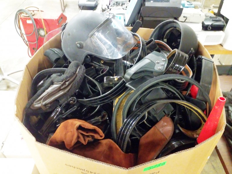 Description: 1 each box consisting of police/securty belts, holsters and othe such like items.