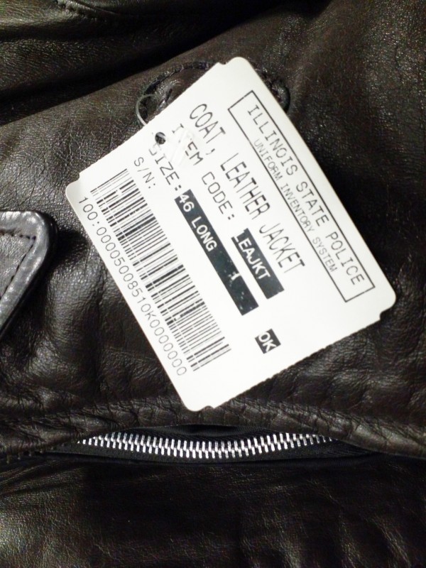 Description: Table lot consisting of miscellaneous size leather jackets. The jackets are old State Police issue and will have stitching on each shoulder where the patches were removed.