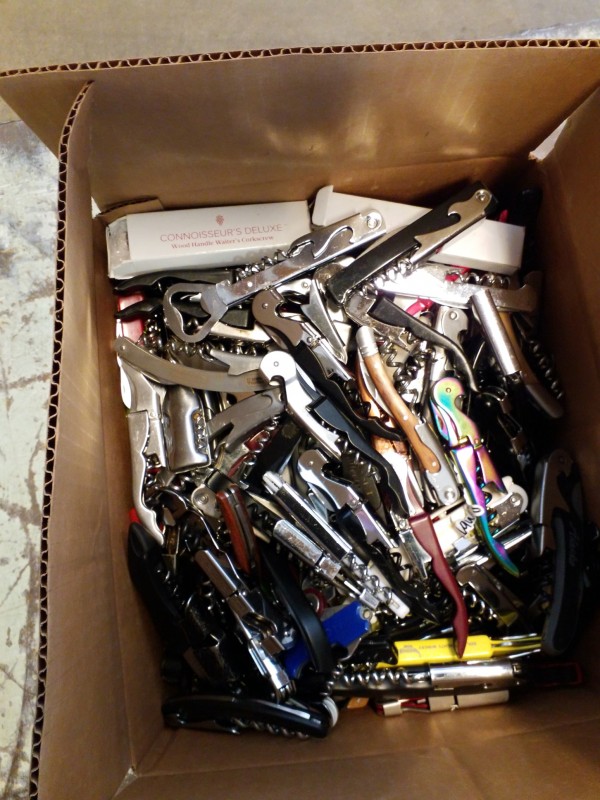 Description: 1 each box consisting of miscellaneous corkscrew/bottle openers.