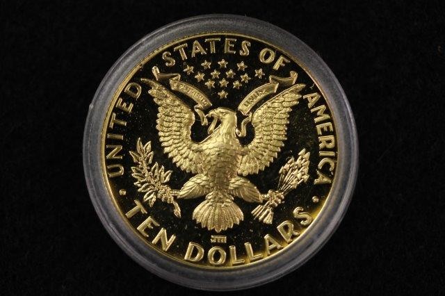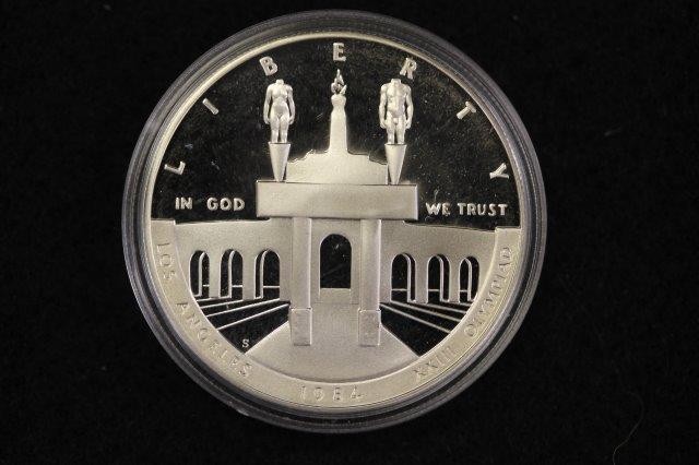 1984 OLYMPIC PROOF COINS; GOLD TEN DOLLAR 15.046G FINE GOLD, ONE DOLLAR SILVER; 24.06G FINE SILVER