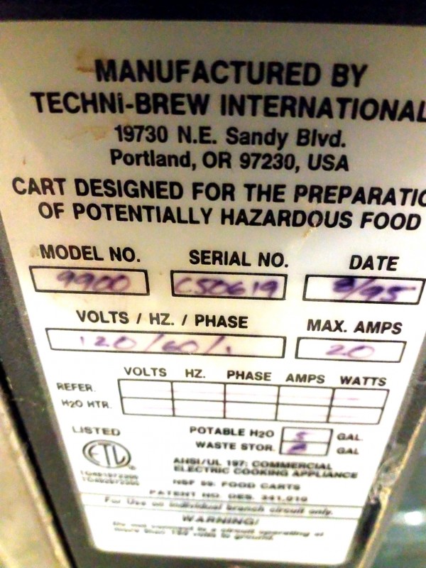 Description: 1 each Reneka model plus espresso machine and 1 each Techni-Brew International madel 9900 cart.
