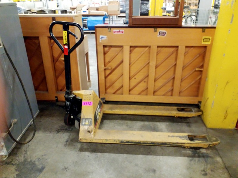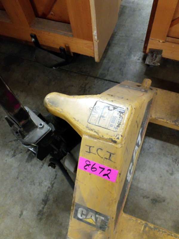 Description: 1 each CAT 5000lb capacity pallet jack. Unit pumps up under no weight.
