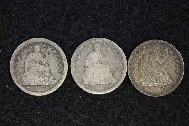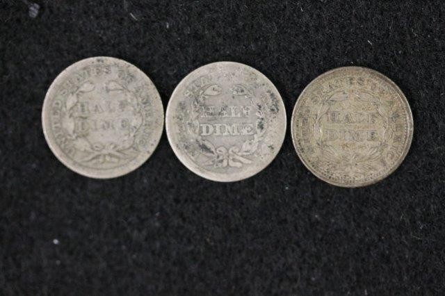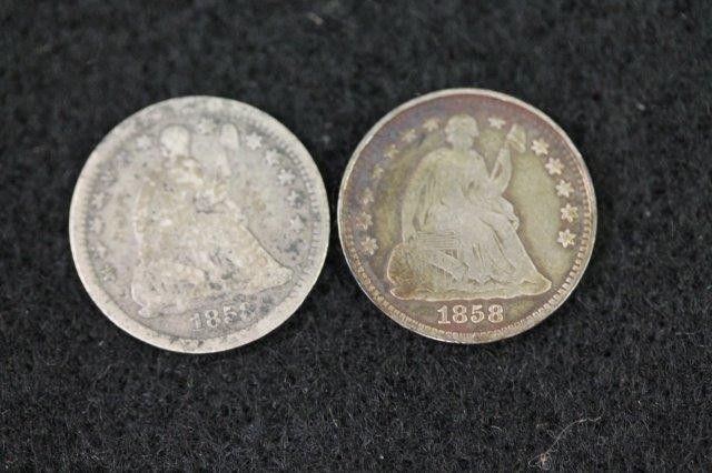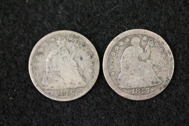 8 - U.S. SEATED LIBERTY HALF DIMES; 3 - 1853 W/ ARROWS, 1857, 1857O, 1858, 1858O, 1862.
