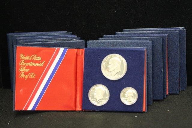 19 - U.S. BICENTENNIAL 3 PC SILVER PROOF SETS.