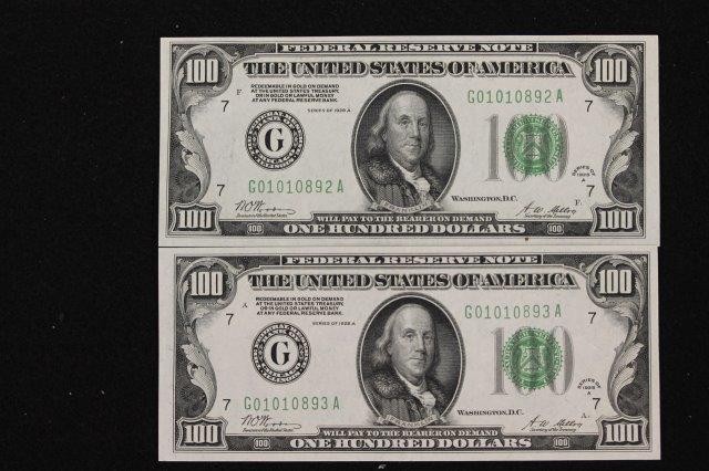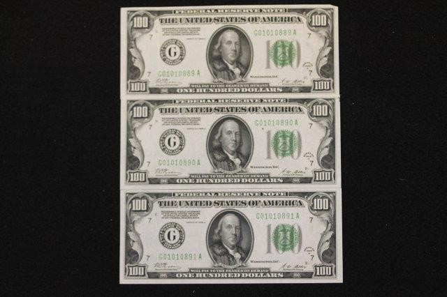 5 - 1934A $100 REDEEMABLE IN GOLD NOTES. ALL CONSECUTIVE SERIAL NUMBERS.