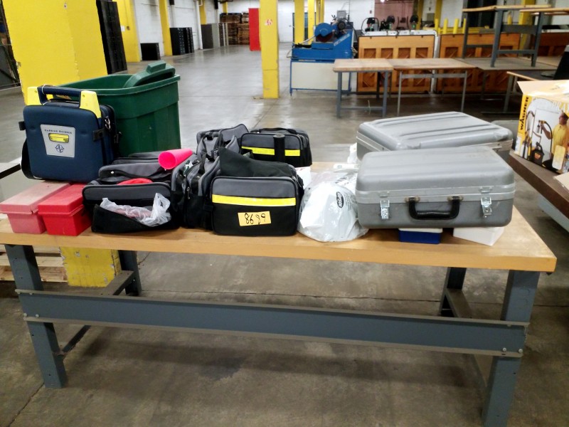Description: 1 each table lot consisting of miscellaneous items. The table isn't included in this lot.