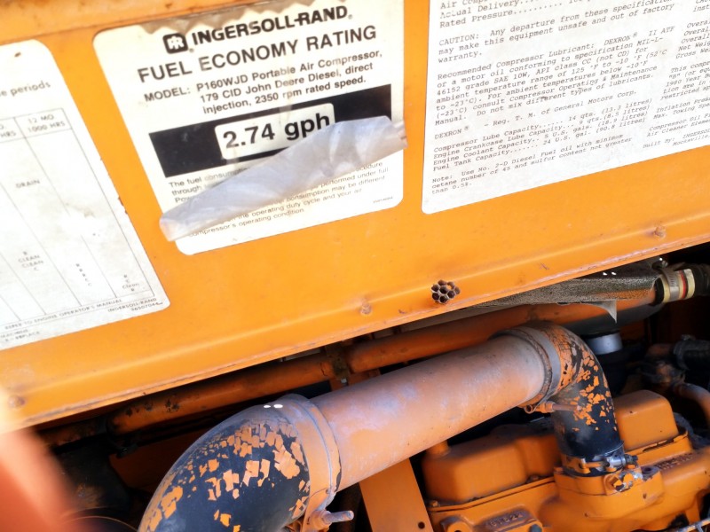 Description: 1 each Ingersoll-Rand model P160WJD trailer air compressor with a John Deere diesel motor. NO TITLE is available for this unit.