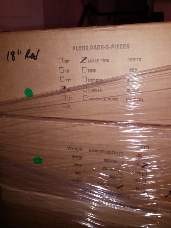 Description: 1 each pallet consisting of miscellaneous floor cleaning pads.