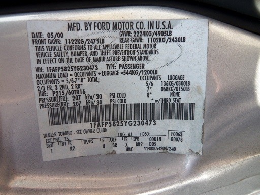 43002 - 2000 Ford Taurus 6 Cylinders 2 3.0L MFI FFV OHV - Mileage: 161,771