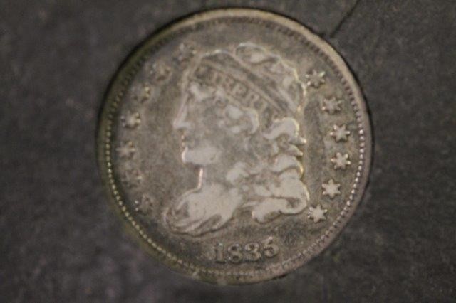 5-U.S. HALF DIMES; CAPPED BUST 1830, 1835, SEATED HALF DIMES 1837, 1853 W/ARROWS, 1862