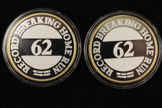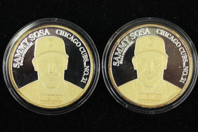2-1OZ .999 FINE SILVER ROUNDS; 2- SAMMY SOSA 62ND HOME RUN COMMEMORATIVES