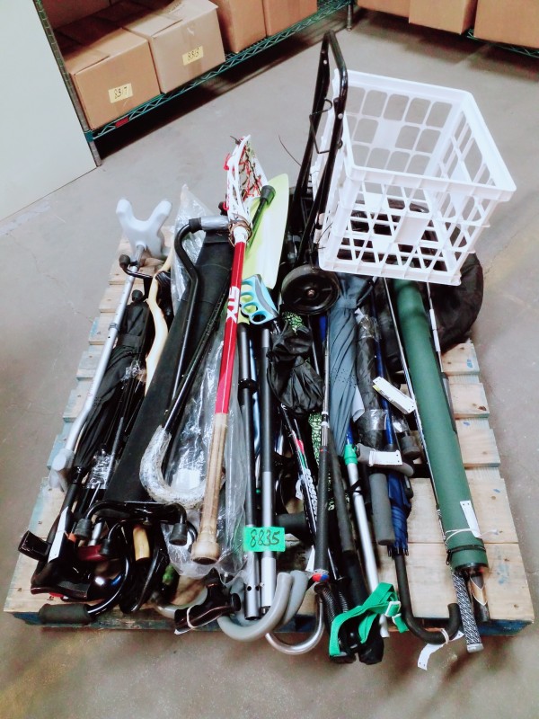 Description: 1 each pallet consisting of miscellaneous items including - walking canes, umbrellas and other.