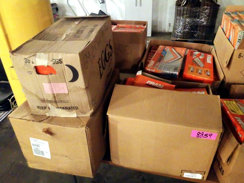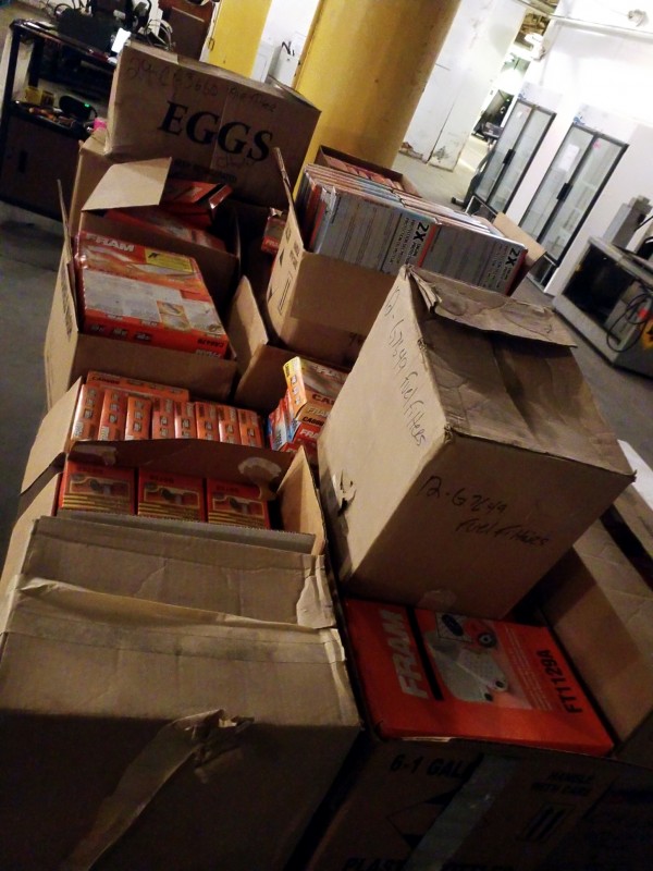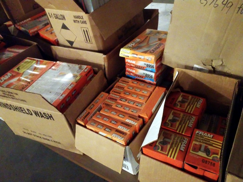 Description: 1 each table lot consisting of miscellaneous auto parts. The parts appear to all be filters, (air, gas and oil). The table isn't included in this lot.