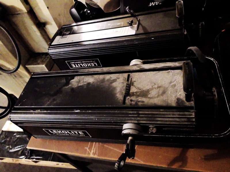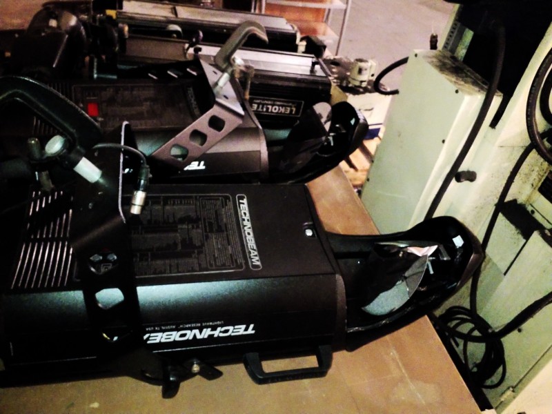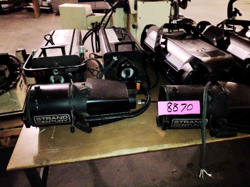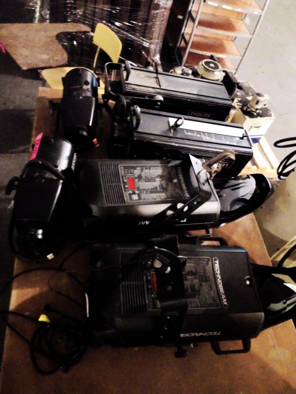 Description: 1 each table lot consisting of miscellaneous theater lighting. The table isn't included in this lot.