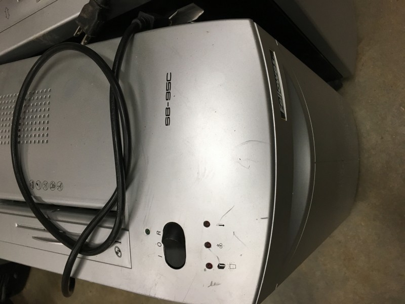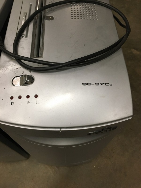 2 commercial paper shredders. Both shredders function properly. Tested on 11/02/20. One shredder is a Fellowe’s model #SB-95C and the other is a Fellowe’s model #SB-97Cs. The 97Cs has a crack on the pull-out handle. See pictures. No shredder paper bags included. Very expensive shredders when new.