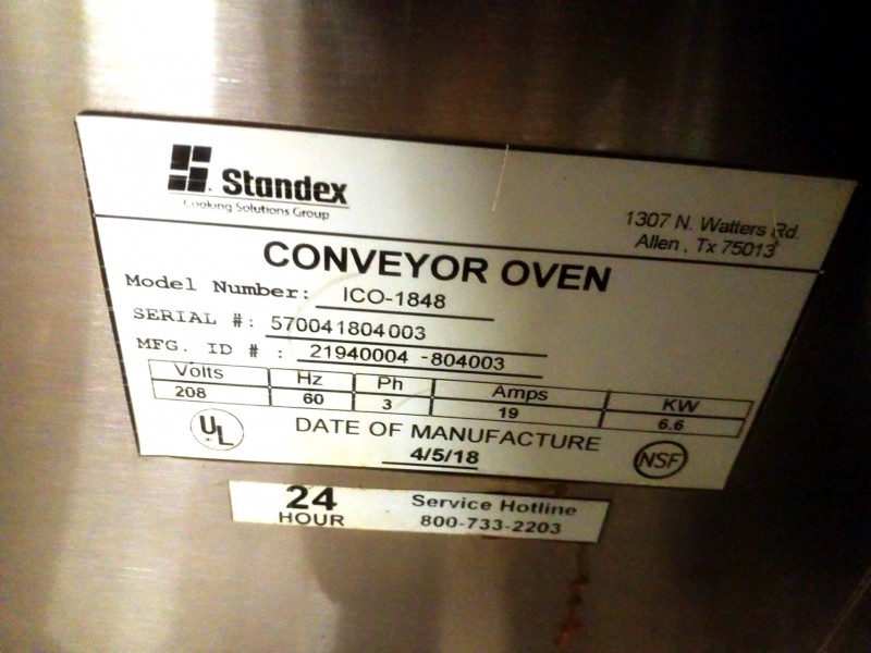 Description: 1 each Bakers Pride model ICO 1848 conveyor oven.