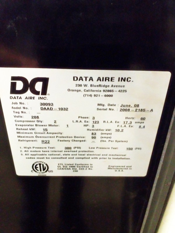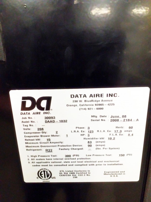 Description: Lot consisting of 2 each Data Aire DA DAP II chillers with miscellaneous parts.