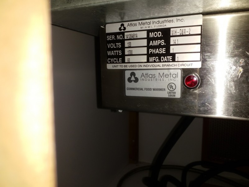 Description: 1 each Atlas Metal Products, Inc. model WIHD&M2 hot well food server/buffet on wheels.