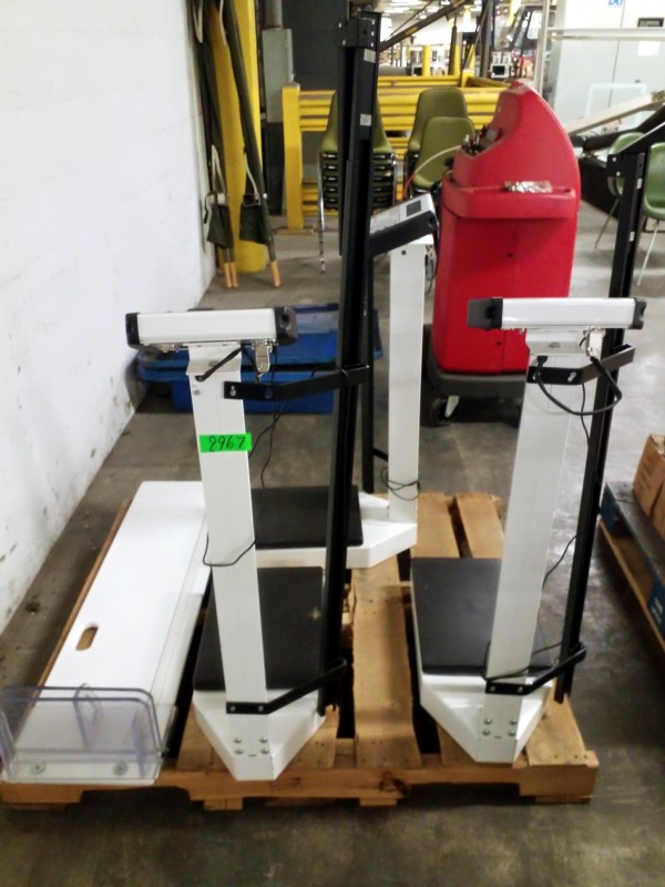Description: 1 each pallet consisting of 3 each Detecto weight cales with height measurement and 1 each SECA height board.