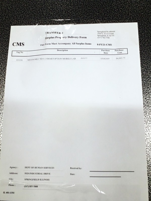 THE ILLINOIS DEPARTMENT OF CENTRAL MANAGEMENT SERVICES WILL NOT PERMIT DELINQUENT PAYMENT OR PICKUP OF IBID MERCHANDISE. ALL UNPAID/UNCLAIMED ITEMS WILL BE RESOLD AND ABOVE PENALTIES SHALL BE IMPOSED ON DELINQUENT BIDDER. WHEN BIDDER MAKES PAYMENT BUT FAILS TO PICK-UP AWARDED PROPERTY WITHIN 5 BUSINESS DAYS, BIDDER SHALL ONLY BE ENTITLED TO A REFUND, LESS THE ABOVE PENALTIES ENUMERATED ABOVE.