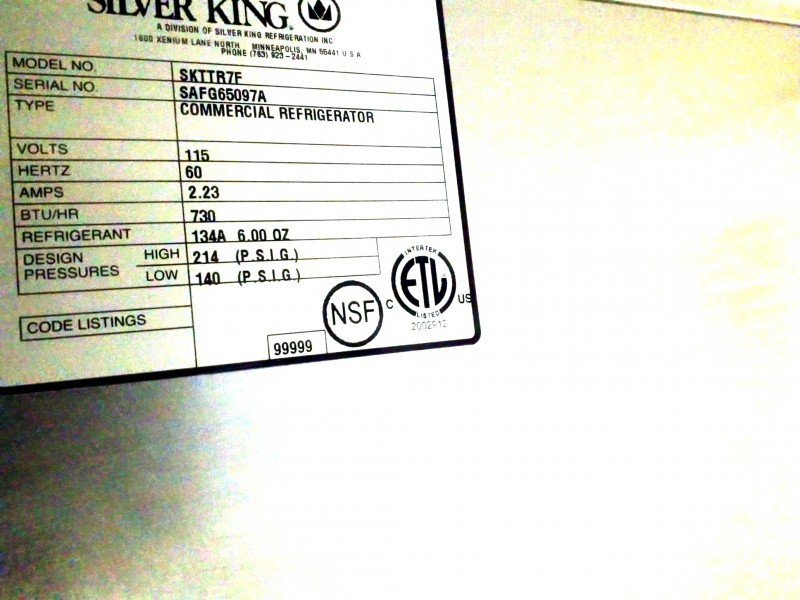 Description: 1 each SIlver King commercial refrigerator.