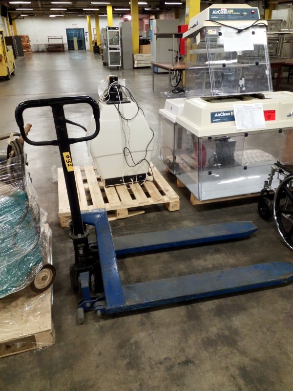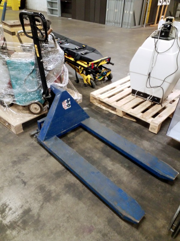 Description: 1 each pallet jack. Unit doesn't hold pressure, the pump will need to be rebuilt and/or replaced.