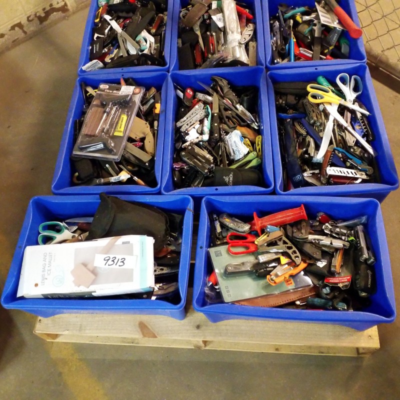 Description: 1 each pallet consisting of miscellaneous TSA items. If the pallet you win has bins on it you will need to remove the contents and leave the bins at the warehouse. Therfore the winning bidder will need to bring with them their own containers, bins and/or other to remove the contents and leave the bins behind.