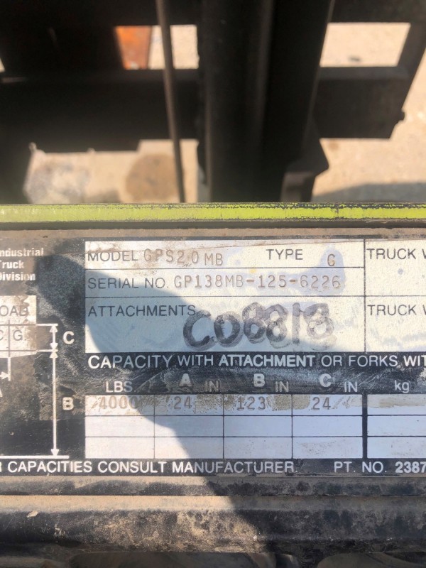 Description: 1 each Clark forklift. See documant gallery for a detailed description.