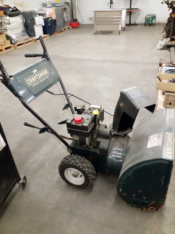 Description: 1 each Craftsman snow blower. Motor spins free, not locked up.