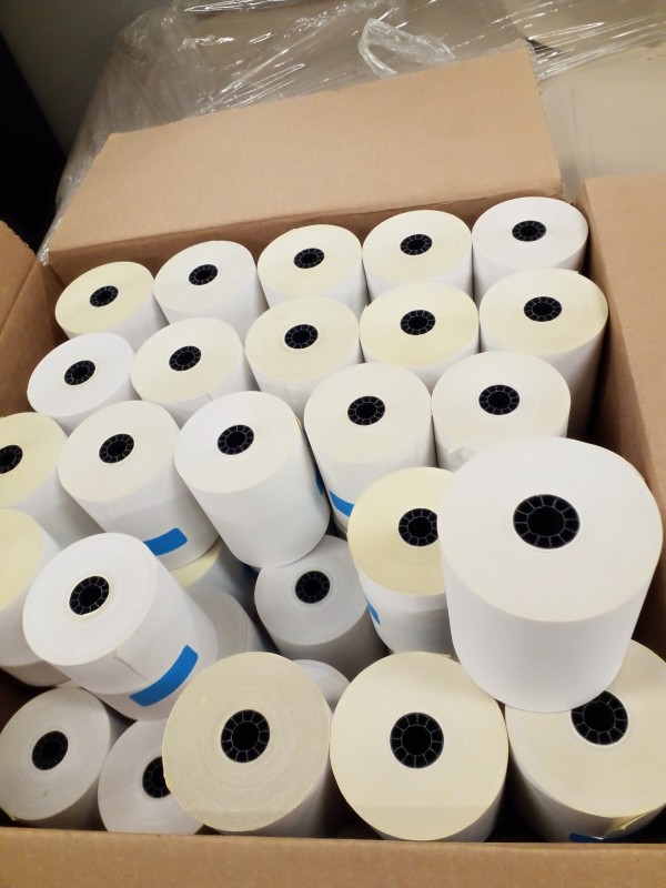Description: 1 each pallet consisting of cases of carbonless ca$h register rolls.