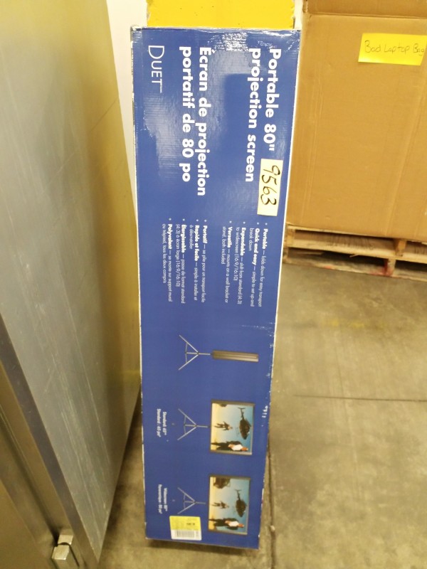 Description: 1 each Duet portable 80" projection screen. Unit appears to be new in box never opened.