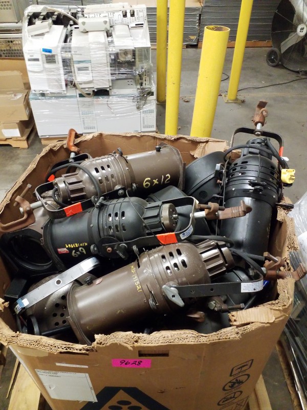 Description: 1 each pallet size box consisting of theater lighting and possible other.