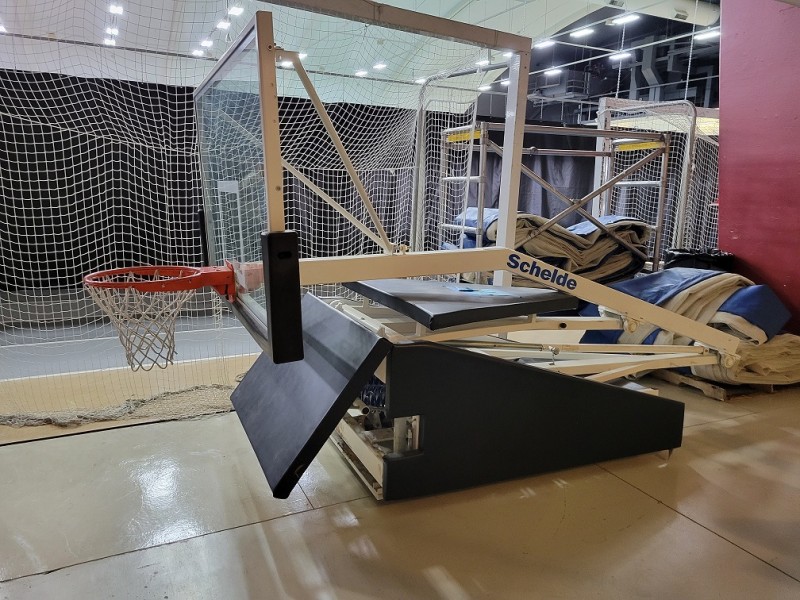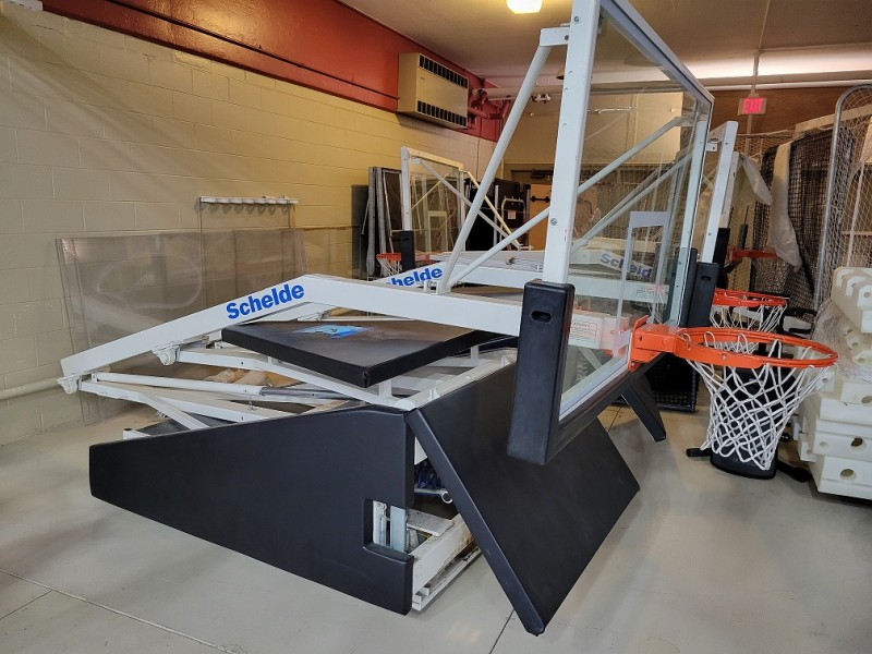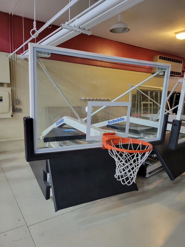 Description: This lot consists of 4 each Shelde portable basketball backstops located in Dekalb, IL at Northern Illinois University. There is no dock so they would need to be loaded from the ground and the buyer is responsible for loading. These units were purchased in 2004 @ $6998.75 each. These units are all on wheels and appear to be in good shape.