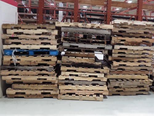 LOT OF 64 VARIOUS SIZE PALLETS, CONDITION UNKNOWN