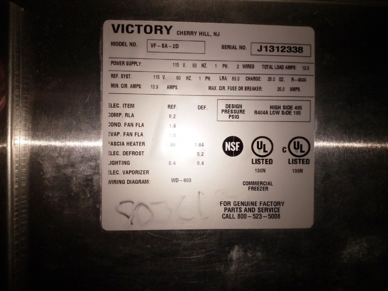 Description: 1 EACH. VICTORY V-SERIES FREEZER
