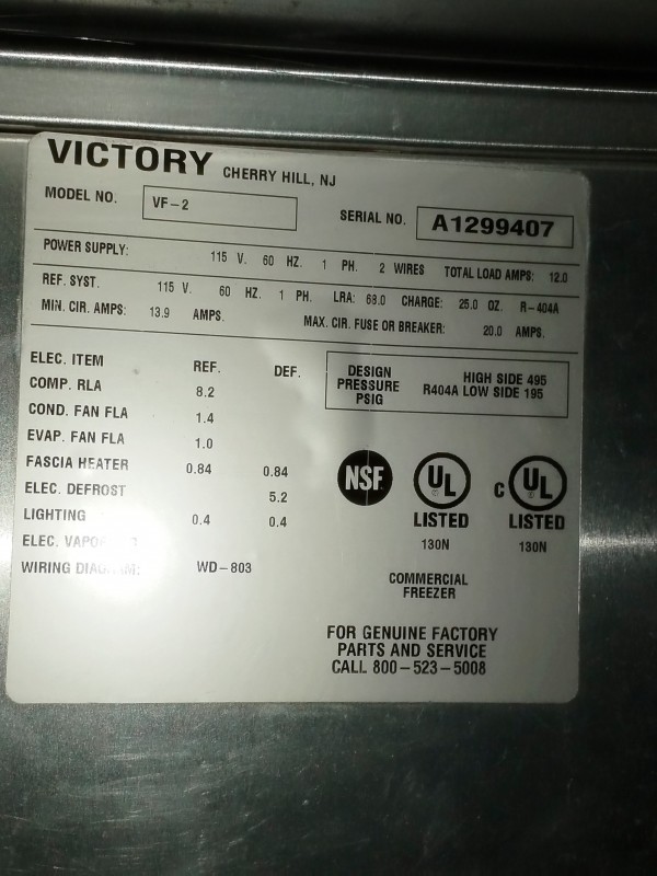 Description: 1 EACH VICTORY FREEZER