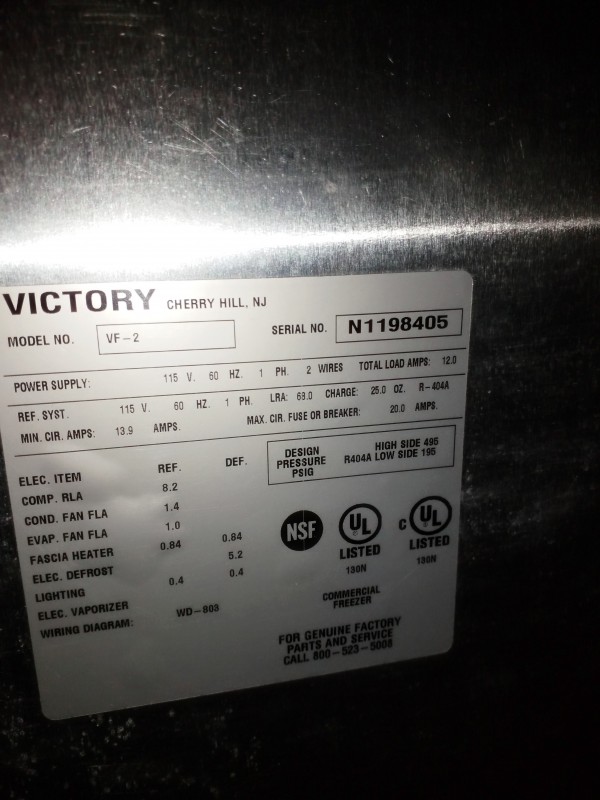 Description: 1 EACH VICTORY FREEZER